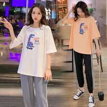 孕妇装夏装休闲孕妇裤外穿新款孕妇套装短袖T恤上衣时尚款孕妈装夏季夏天裙子网红两件套 白色套装 M