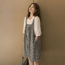 孕妇网红格子背带裤套装外出夏季外穿薄款宽松夏装短袖孕妈套装 背带裤套装 M