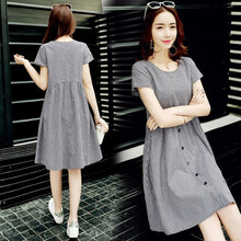 孕妇装夏装外出2019新款格子孕妇连衣裙中长款时尚潮妈孕妇裙子夏季 红色 M