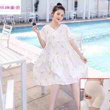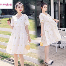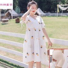 孕妇装夏装连衣裙哺乳衣外出潮妈个性韩版A字裙子夏季网红孕妇装cty 白色绣菠萝(哺乳版) M建议115斤以下