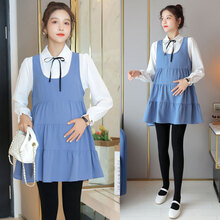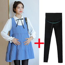 珺瑞禾 孕妇装连衣裙2021春季新款假两件拼接长袖中长款时尚潮妈孕妇裙 黑色裙+黑色孕妇裤 M(建议体重90-110斤)