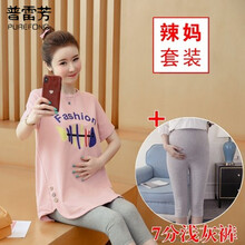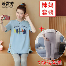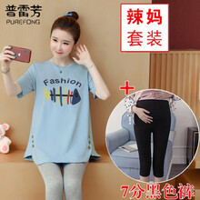 普雷芳孕妇装夏装2021新款套装外出时尚款洋气潮妈小个子孕妇短袖夏天t恤连衣裙上衣 蓝色上衣 M新款上架!质量保证,免费试穿,适合就留下,七天无理由退换,欢迎选购!质量保证,买~