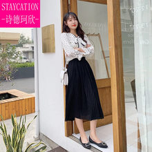 托腹雪纺裙宽松过膝中长款超仙女百褶裙子 白色 M