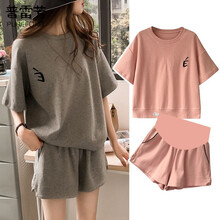 普雷芳孕妇装夏套装外出时尚款怀孕网红套装小个子孕妇短袖短裤托腹休闲运动两件套潮妈夏 灰色套装 M新款上架!质量保证,免费试穿,适合就留下,七天无理由退换,欢迎选购!质量保证,买~