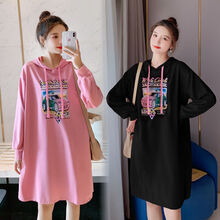 南叮雅格孕妇装秋装宽松休闲中长款连帽卫衣时尚秋季长袖上衣潮妈 粉色 M秋冬款上新,全国退换包邮,领卷满99-6,179减10,优惠不停有礼