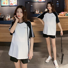卓贝欣孕妇装夏装时尚套装2021棉短袖T恤+托腹短裤两件套潮妈 单件 白色短袖 XL