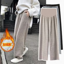 台英华加大码孕妇针织阔腿裤春季时尚外穿垂感拖地裤子网红潮妈秋冬季加绒宽松长裤 深灰色四季单款 M适合90-115斤【针织棉孕妇阔腿拖地裤】【坠感十足,视觉增高】【百搭版型,网红风格】【送运费险无忧购物】点击查询店铺其他大码孕妇装