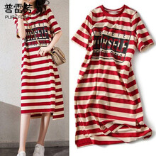 普雷芳孕妇装2021夏装新款时尚外出哺乳连衣裙中长款辣妈条纹T恤裙喂奶女装产后潮妈夏季 红色 M新款上架!质量保证,免费试穿,适合就留下,七天无理由退换,欢迎选购!质量保证,买~