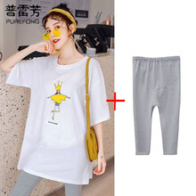 普雷芳孕妇装套装2021夏装新款时尚韩版宽松孕妇裙中长款短袖T恤上衣七分裤两件套潮妈 黄色上衣 L新款上架!质量保证,免费试穿,适合就留下,七天无理由退换,欢迎选购!京东品质,买
