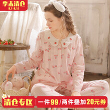 【1件99】【2件再减20】富朵2021春夏纯棉纱布小草莓月子服薄款孕妇哺乳睡衣可爱产后产妇家居服 天蓝色 M码(建议产后115斤左右)