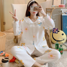 回访人月子服春秋冬季棉质产后加厚空气棉孕妇睡衣产妇哺乳10月份11出院 A6016#夹层粉花朵 女款花边领XL码 135-155斤拍下有赠送运费险,免费退换货