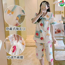 怀孕妇睡衣女夏季薄款纯棉短袖月子服产后哺乳期产妇喂奶家居套装 6818-黄菠萝 XL码120-140斤十月结晶店铺,月子服,孕妈装,待产包全套,奶瓶,孕妇护肤品,产妇卫生巾,婴儿衣服,奶瓶,