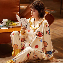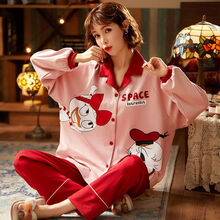 100%纯棉睡衣女秋长袖春秋季棉质开衫韩版学生月子服大码家居服两件套 D6005 3XL 建议150斤-170斤100%纯棉睡衣女秋长袖春秋季棉质开衫韩版学生月子服大码家居服两件套 D6005 3XL 建议150斤-170斤