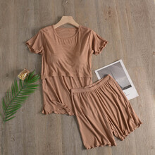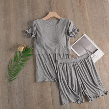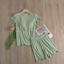 免穿文胸哺乳衣夏季薄款哺乳喂奶产后月子服大码短袖短裤家居睡衣 黑色 M