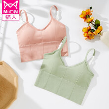 京东超市 猫人2件装无钢圈文胸女士内衣女可调节肩带美背抹胸女士运动无缝内衣性感少女胸罩 黑色+白色 M(均码)猫人2件装无钢圈文胸女士内衣女可调节肩带美背抹胸女士运动无缝内衣性感少女胸罩 黑色+白色 M(均码)