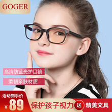 Goger儿童防蓝光眼镜孩子防辐射男女宝宝上网课看电脑预防手机平板游戏近视眼镜TR 亮黑圆框(3~7岁可戴)