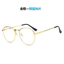 防蓝光近视眼镜男女韩版防辐射平面镜学生护目镜圆框复古平光眼镜 黑色框 防蓝光防辐射无度数【送镜盒镜布】