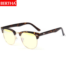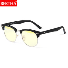 贝尔莎(Bertha)防辐射眼镜防蓝光大框近视电脑护目镜游戏专用眼镜男女通用变色平光镜83220 深茶色 0度淡黄防蓝光镜片