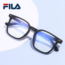 FILA斐乐 近视眼镜框男防蓝光防辐射女 平光无度数护目镜舒适TR架一体鼻托 FL7205-BLACK亮黑色