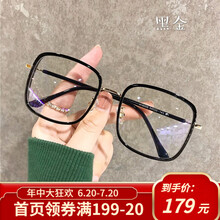 泛视近视眼镜男女防蓝光防辐射眼镜大框方形眼镜框架可配度数电脑平光镜护目镜 黑银 配1.61超薄非球面防辐射防蓝光镜片