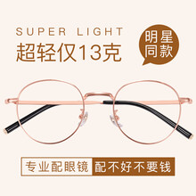 近视眼镜女小脸显瘦秀智同款配防蓝光防电脑辐射素颜眼镜架平光镜护眼眼镜框女小框纯钛圆框眼镜男 黑金 镜架