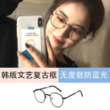 RNRN 近视眼镜女韩版潮防辐射抗蓝光配有度数素颜小圆2021小框大脸显瘦素颜智秀同款 【定制近视】双眼400度(镜框颜色请留言)含镜框