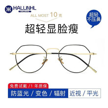 HALUNHL近视眼镜框多边形防蓝光防雾护目镜超轻可配变色平光镜 黑银 免费配1.56防辐射抗疲劳0-400丨留言度数