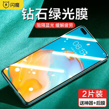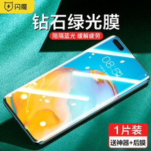 闪魔 华为p40pro/p40钢化膜绿光膜 升级抗蓝光全屏覆盖护眼防辐射手机保护膜 p40pro【9D曲面钻石绿光膜】2片装+神器 【贴坏贴歪免费补发】