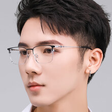 电脑防辐射眼镜纯钛看手机保护眼睛的眼镜方框潮个性超轻变色 防蓝光眼镜近视眼镜男配眼镜框架 黑银色 (单买眼镜框 平光眼镜)