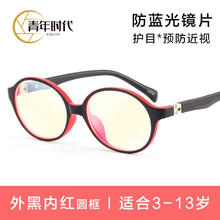 【顺丰秒发】青年时代儿童防蓝光眼镜新品护目近视眼镜框TR90防辐射缓疲劳电脑平光护目镜超轻小学生 A-方框外黑内紫(防蓝光无度数)