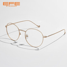 EFE防辐射眼镜男 纯钛近视眼镜架女 防蓝光眼镜圆框复古超轻眼镜框 C3黑色纯钛 0度防蓝光镜片
