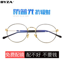 百飒(BYZA)防辐射眼镜 防蓝光男女款电脑手机护目平光镜文艺复古圆框眼镜可配近视眼镜 银框【防蓝光0度数镜片】