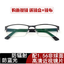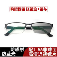 RNRN 半框变色近视眼镜男防蓝光防辐射防紫外线钛合金平光变色护目眼镜 黑框1.56非球防辐射(变茶) 近视175度