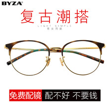 百飒(BYZA)复古金属眼镜框 圆形近视眼镜男女款 轻质眼镜架 防辐射防蓝光眼镜电脑护目镜 黑色 蓝光配镜(1.56防蓝光镜片-适配0-600度)