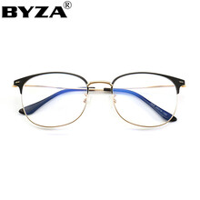 百飒(BYZA)防辐射眼镜 防蓝光男女款平光镜玩手机电脑护目镜 超轻眼镜架可定制近视眼镜 黑框银边