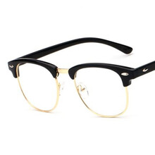网红大框平光镜女防辐射男复古韩版潮半框眼镜框架电脑护目镜 亮黑银框