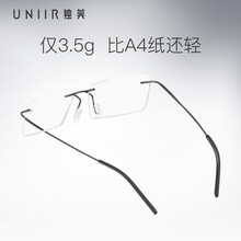 独美眼镜近视眼镜框男 眼镜架平光镜钛合金防辐射眼镜防滑 方框幻影黑 镜架+1.591防爆防蓝光(适合0-600度)