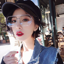 【顺丰秒发】网红眼镜透明平光镜防辐射男女韩版潮大框眼镜框方形 1.56防辐射依视路旗下万新镜片/留言度数+镜框