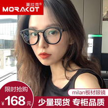 MORAKOT板材眼镜框男女款韩版同款黑框近视眼睛潮防蓝光防辐射平光镜明星网红同款可定制度数 琥珀色-配0度变色防蓝光-优质板材