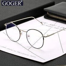 Goger防蓝光眼镜金属圆框韩版学生时尚光学镜眼镜架防辐射男女眼镜 黑金框 平光防蓝光镜片(0度)