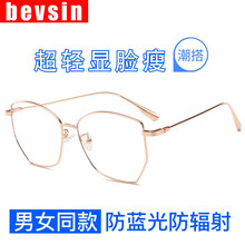 bevsin 防蓝光眼镜轻电脑多边形眼镜架男电竞变色护目眼睛近视眼镜框女配平光镜片 亮黑框 0度防蓝光防辐射