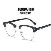 防辐射眼镜男女防蓝光电脑护目镜无度数平光平面镜近视眼镜韩版潮 【亮黑色金圈】+ 防蓝光防辐射无度数(送镜盒镜布)