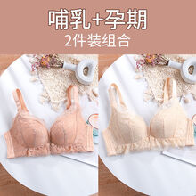 【Evich】孕妇内衣怀孕期小胸哺乳文胸加厚款蕾丝喂奶防下垂前开扣聚拢胸罩 卡其+肤色 34/75【AB杯 厚罩杯】