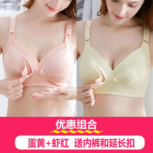 孕妇内衣哺乳喂奶文胸怀孕期无钢圈薄款防下垂胸罩哺乳文胸喂奶睡觉可穿孕产用品 【纯色款】虾红+蛋黄 40/90BC杯通用