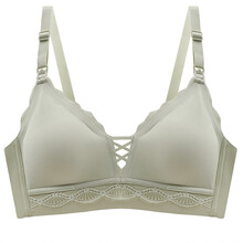 米度丽 哺乳内衣聚拢防下垂孕妇文胸女怀孕期产后喂奶胸罩大码薄款bra夏 CN90026 军绿 M