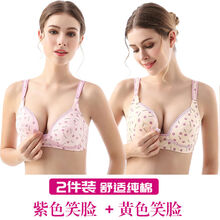 义乌小商品馆 孕妇哺乳内衣无钢圈纯棉产后喂奶文胸女月子怀孕期胸罩防下垂薄款 DiBe ZF4.5 2件装:黄色笑脸+紫色笑脸 36/80