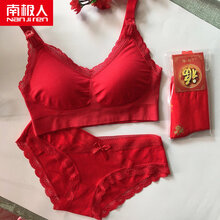 南极人NanJiren孕妇内衣内裤套装红色薄款怀孕期结婚哺乳文胸无钢圈聚拢喂奶胸罩 魔力弹(升级版)配蕾丝低腰内裤 S