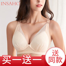 INSAHO 哺乳文胸孕妇内衣前开扣无钢圈聚拢内衣舒适出面里料孕期哺乳期内衣 9886 肤色送香芋色 38/85