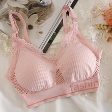 十月结晶同款无钢圈哺乳文胸美背怀孕期产后母乳内衣蕾丝款胸罩大码 粉色 S