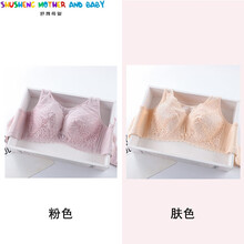 十月结晶哺乳文胸 夏季舒适无痕全杯聚拢蕾丝边无钢圈孕妇内衣 深粉色 S